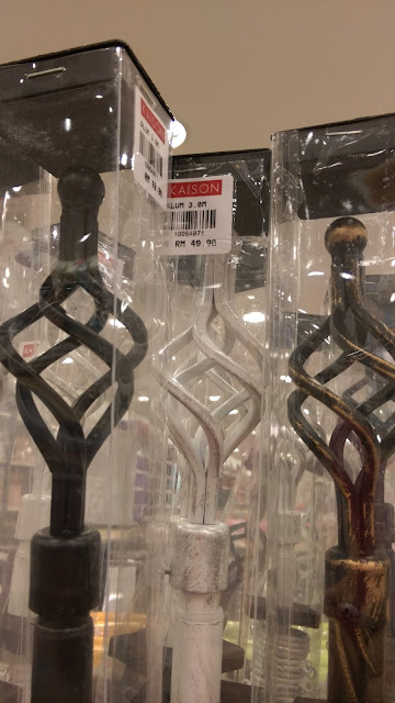 Pastu saya ternampak la besi langsir yang dijual kat situ. Aduh.... ada 3 size yang semuanya sesuai untuk rumah saya. Paling panjang boleh pegi sampai 3 meter, memang muat pintu2 empat panel saya.