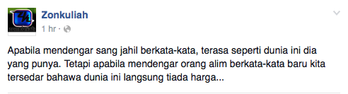 Kalau tidak 'alim sesuatu ilmu, seeloknya duduk diam2, syyyyhhhhhh. Pergilah cari guru. Sebab tu lah kalau sesuatu ilmu apabila disampaikan kepada kami oleh arwah mertua saya (yg sangat 'alim), sedaya upaya kami akan ikut. Dulu jahil, skrg bila dah tahu takkan nak buat tak tahu? Itu sombong namanya.